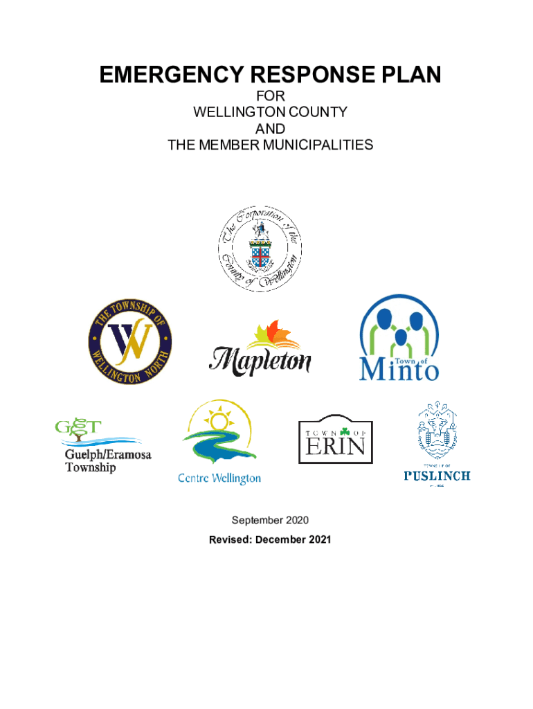 EMERGENCY RESPONSE PLAN FOR WELLINGTON COUNTY AND THE MEMBER MUNICIPALITIES September 2020 Revised: December 2021Table of Contents 1REVISIONS TO THE EMERGENCY RESPONSE PLAN ___ 52BYLAW NUMBERS AND