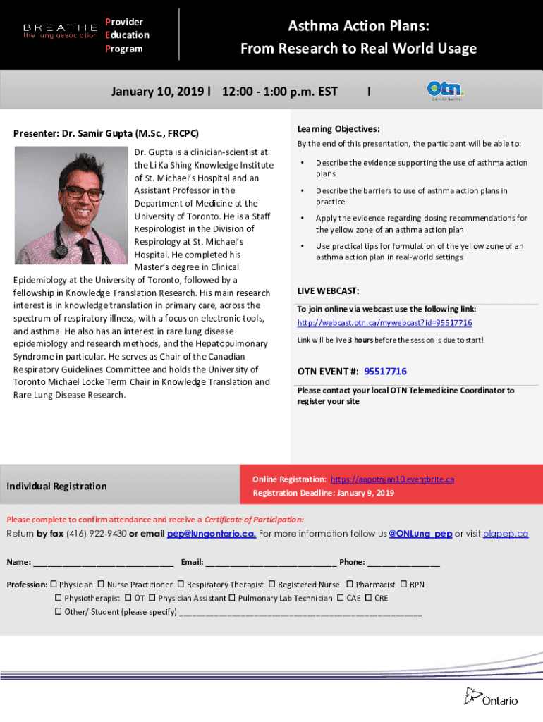 From Research to Real World Usage January 10, 2019, l 12:00 1:00 p.m. Learning Objectives:Presenter: Dr. Samir Gupta (M.Sc., FR CPC)