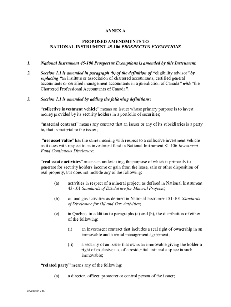 Get the free 1 Annex A Proposed Amendments to National Instrument 45 ...