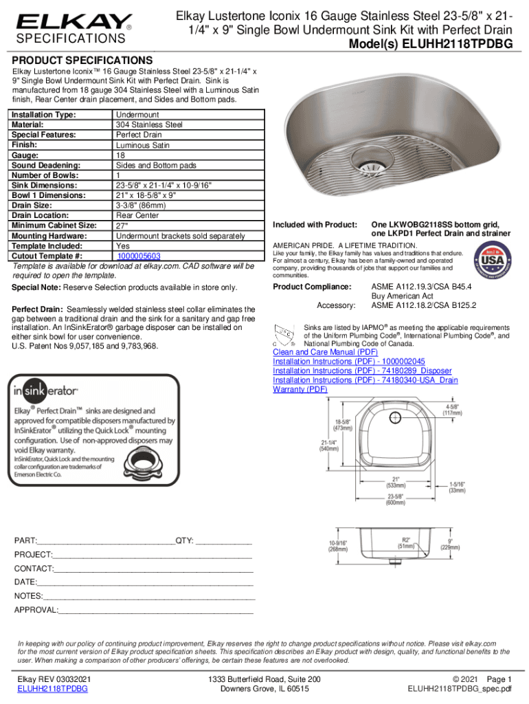 Filling out and eSigning elkay lustertone iconix 16 is now simple. The solution allows you to change and reorganize PDF text, add fillable fields, and eSign the document. Start a free trial of pdfFiller, the best document editing solution.