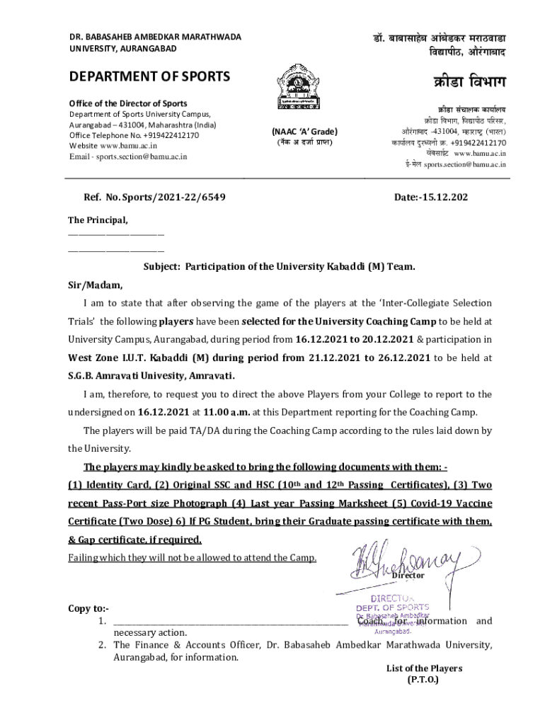 UNIVERSITY, AURANGABADDEPARTMENT OF Sports Office of the Director of Sports