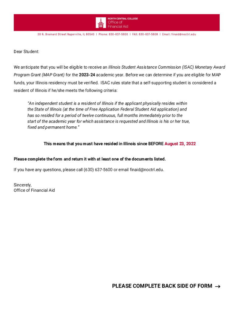 Dear Student: We anticipate that you will be eligible to receive an Illinois Student Assistance Commission (ISAAC) Monetary Award Program Grant (MAP Grant) for the 202324 academic year. Before we