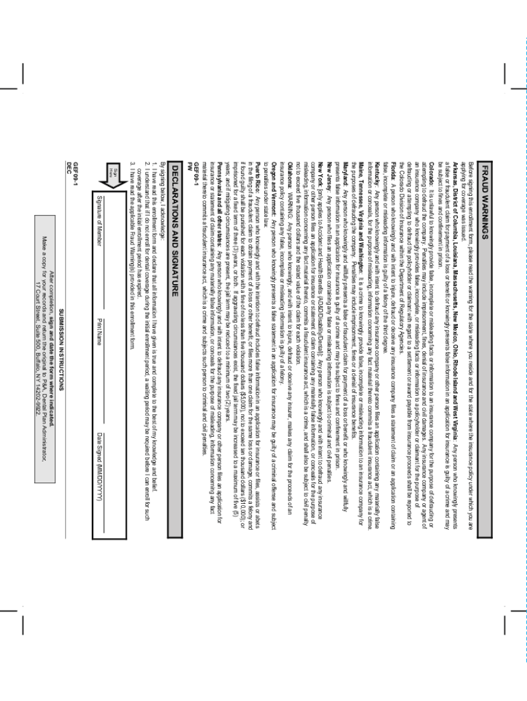 FRAUD WARNINGS Before signing this enrollment form, please read the warning for the state where you reside and for the state where the insurance policy under which you are applying for coverage was