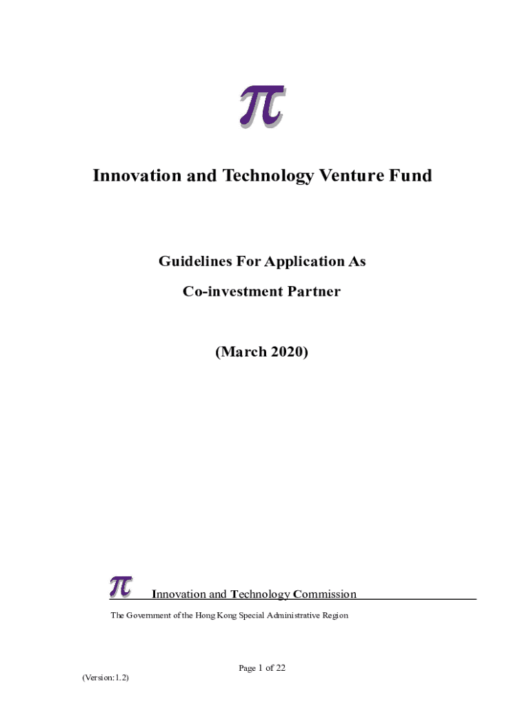 Innovation and Technology Venture FundGuidelines For Application As Coin vestment Partner(March 2020) Innovation and Technology Commission The Government of the Hong Kong Special Administrative Region