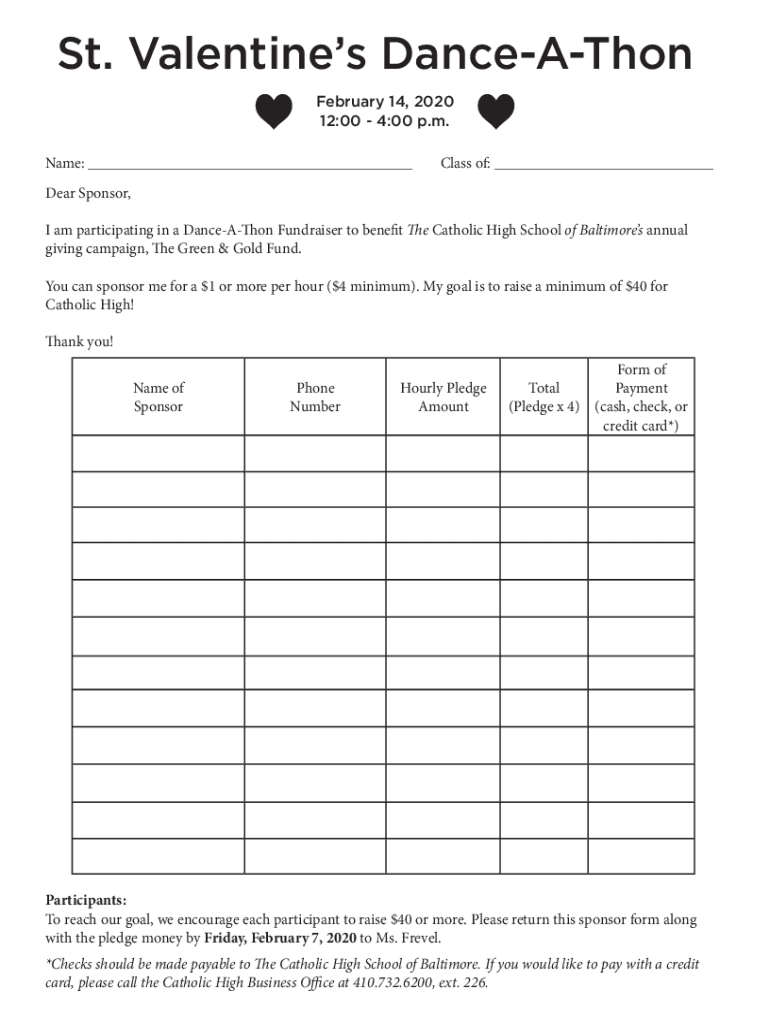 St. Valentines Hackathon February 14, 2020 12:00 4:00 p.m. Name: ___Class of: ___Dear Sponsor, I am participating in a Hackathon Fundraiser to benefit The Catholic High School of Baltimore's annual