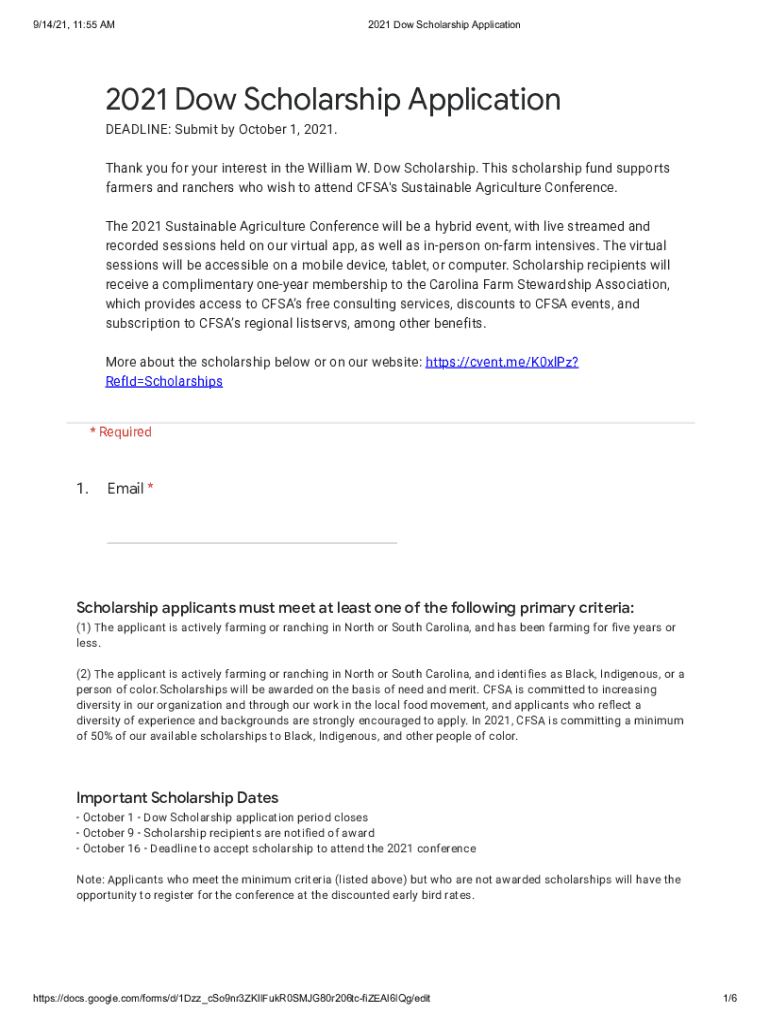 9/14/21, 11:55 AM2021 Dow Scholarship Application2021 Dow Scholarship Application DEADLINE: Submit by October 1, 2021. Thank you for your interest in the William W. Dow Scholarship. This scholarship