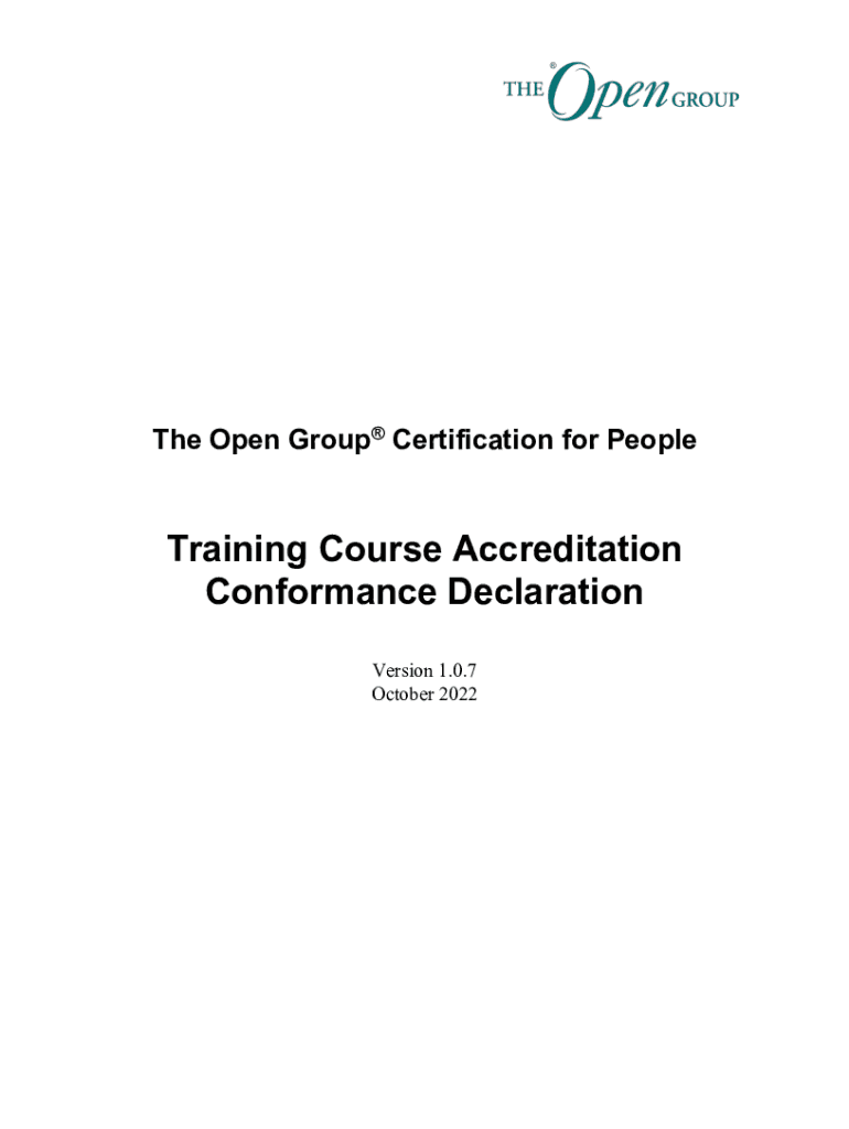 The Open Group Certification for PeopleTraining Course Accreditation Conformance Declaration Version 1.0.7 October 2022 Copyright 2022, The Open Group All rights reserved. This publication may be