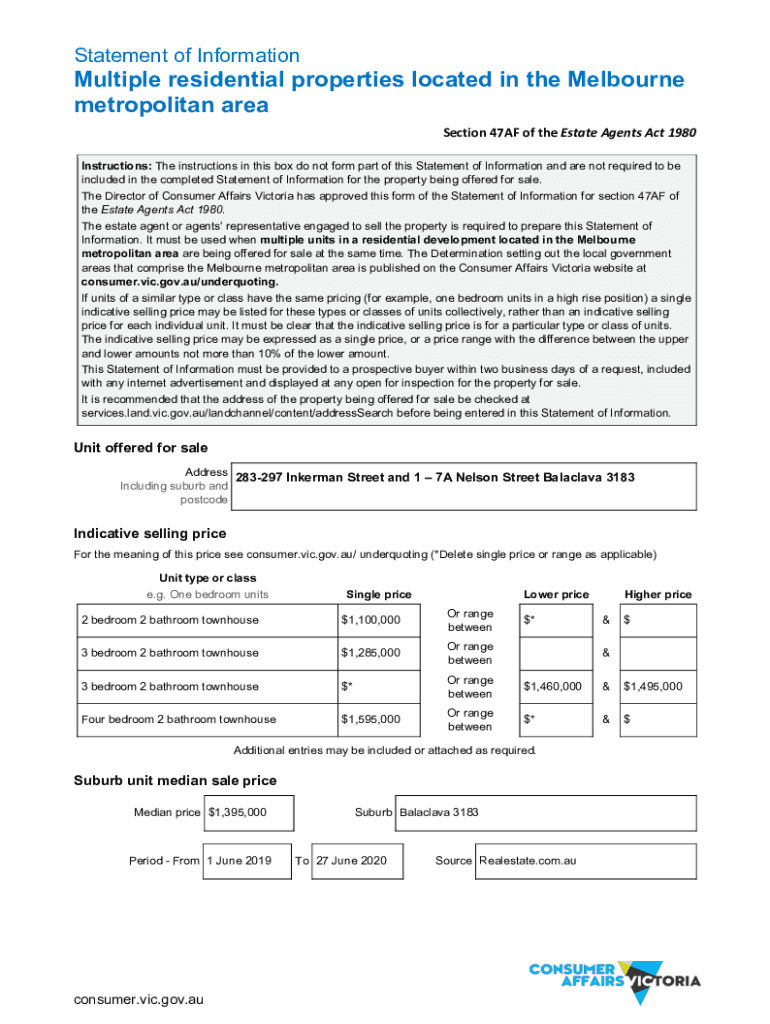 Statement of InformationMultiple residential properties located in the Melbourne metropolitan area Section 47AF of the Estate Agents Act 1980 Instructions: The instructions in this box do not form