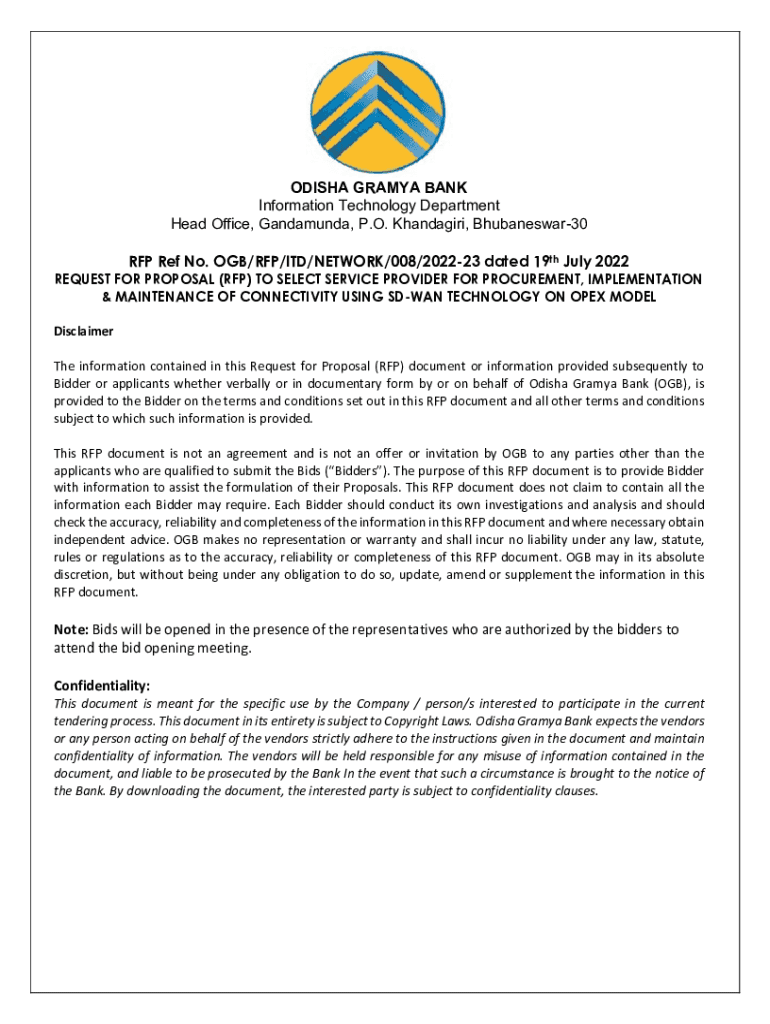 RFP Ref No. GB/RFP/IT/NETWORK/008/202223 dated 19th July 2022