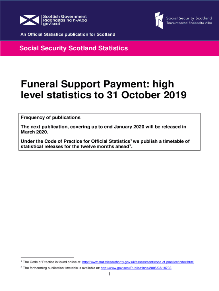An Official Statistics publication for ScotlandSocial Security Scotland StatisticsFuneral Support Payment: high level statistics to 31 October 2019 Frequency of publications The next publication,