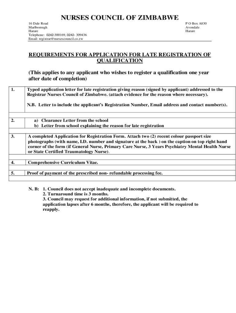 HarareREQUIREMENTS FOR APPLICATION FOR LATE
