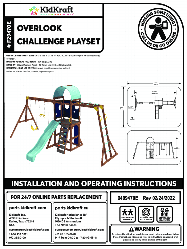 MIS SNE USLICHALLENGE PLAYBILL# F29470EG? IN OVERLOOK SOME TH N IN OR GOO OBSTACLE FREE SAFETY ZONE 30 3 L × 23 4 D × 15 10 H (9.2 × 7.1 × 4.8 m) area requires Protective Surfacing. See page 4.
