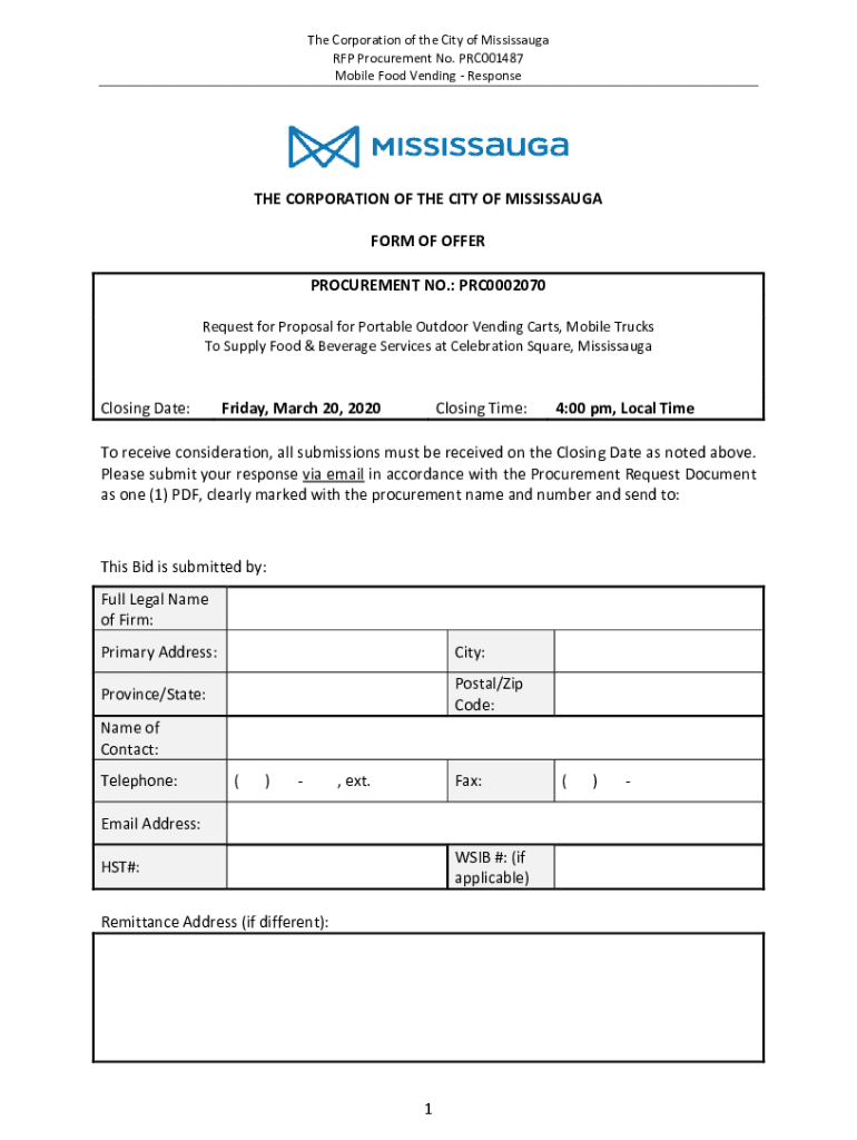 Mobile Food Vending Response CORPORATION OF THE CITY OF MISSISSAUGA