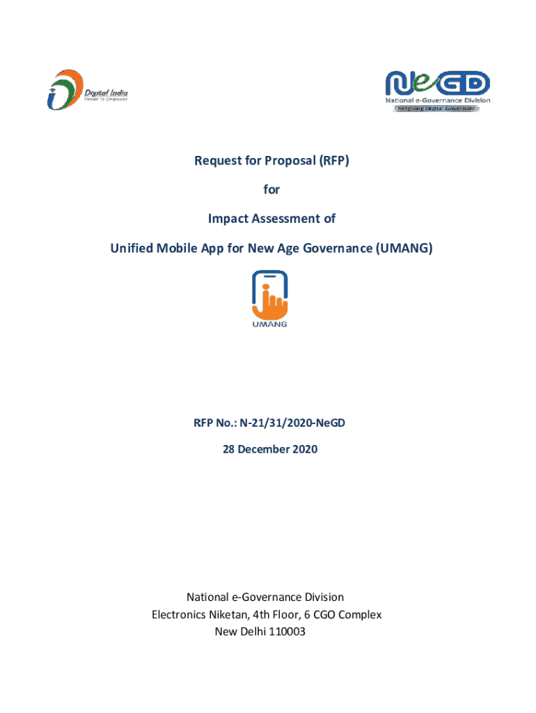Request for Proposal (RFP) for Impact Assessment of Unified Mobile App for New Age Governance (UMA NG)RFP No.: N N21/31/2020NeGD 28 December 2020National governance Division Electronics Nike tan,