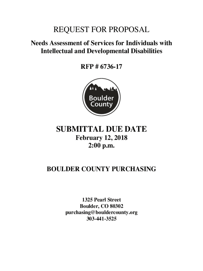 REQUEST FOR PROPOSAL Needs Assessment of Services for Individuals with Intellectual and Developmental Disabilities RFP # 673617SUBMITTAL DUE DATE February 12, 2018 2:00 p.m.BOULDER COUNTY PURCHASING1325