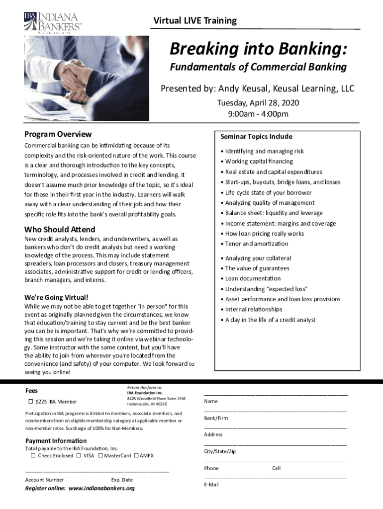 Virtual LIVE TrainingBreaking into Banking: Fundamentals of Commercial Banking Presented by: Andy Feudal, Feudal Learning, LLC Tuesday, April 28, 2020 9:00am 4:00pm Program OverviewSeminar Topics