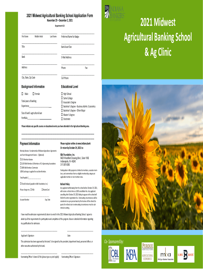 2021 Midwest Agricultural Banking School Application Form2021 Midwest Agricultural Banking School & Ag Clinic November 29 December 2, 2021, Department # 23___ First NameMiddle Initially Name___ Preferred