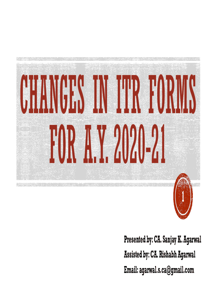 CHANGES IN IT FORMS FOR A.Y. 202021 1 Presented by: CA. Sanjay K. Agarwal Assisted by: CA. Rishabh Agarwal Email: agarwal.s.ca@gmail.comWHICH IT FORMS CAN BE USED FOR FILING OF RETURNS? 2Salary Income