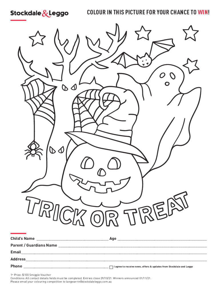 Color IN THIS PICTURE FOR YOUR CHANCE TO WIN! Child's Name ___ Age ___ Parent / Guardians Name ___ Email ___ Address___ Phone ___I agree to receive news, offers & updates from Stock dale and Leggo1st