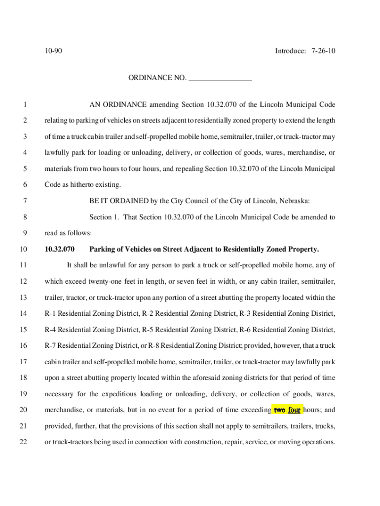 Get the free AN ORDINANCE amending Section 10.32.070 of the Lincoln ...