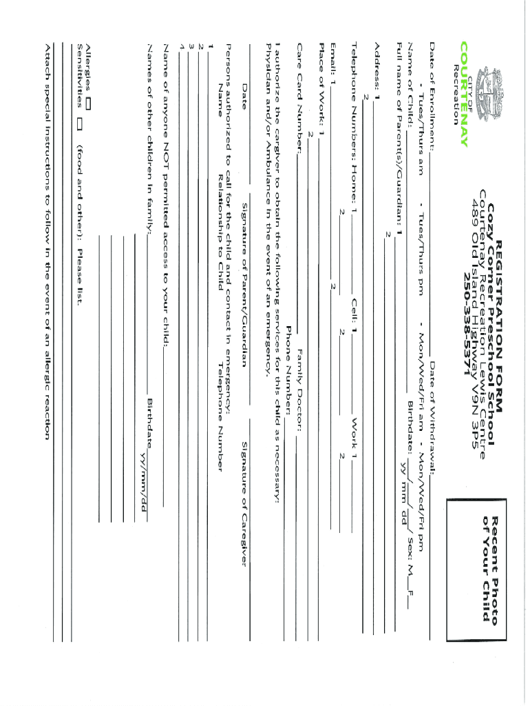 Parental/Guardian Consent Form Courtesy Recreation If your child has any medical or other conditions that may affect your children participation in a City of Courtesy program, please contact the applicable