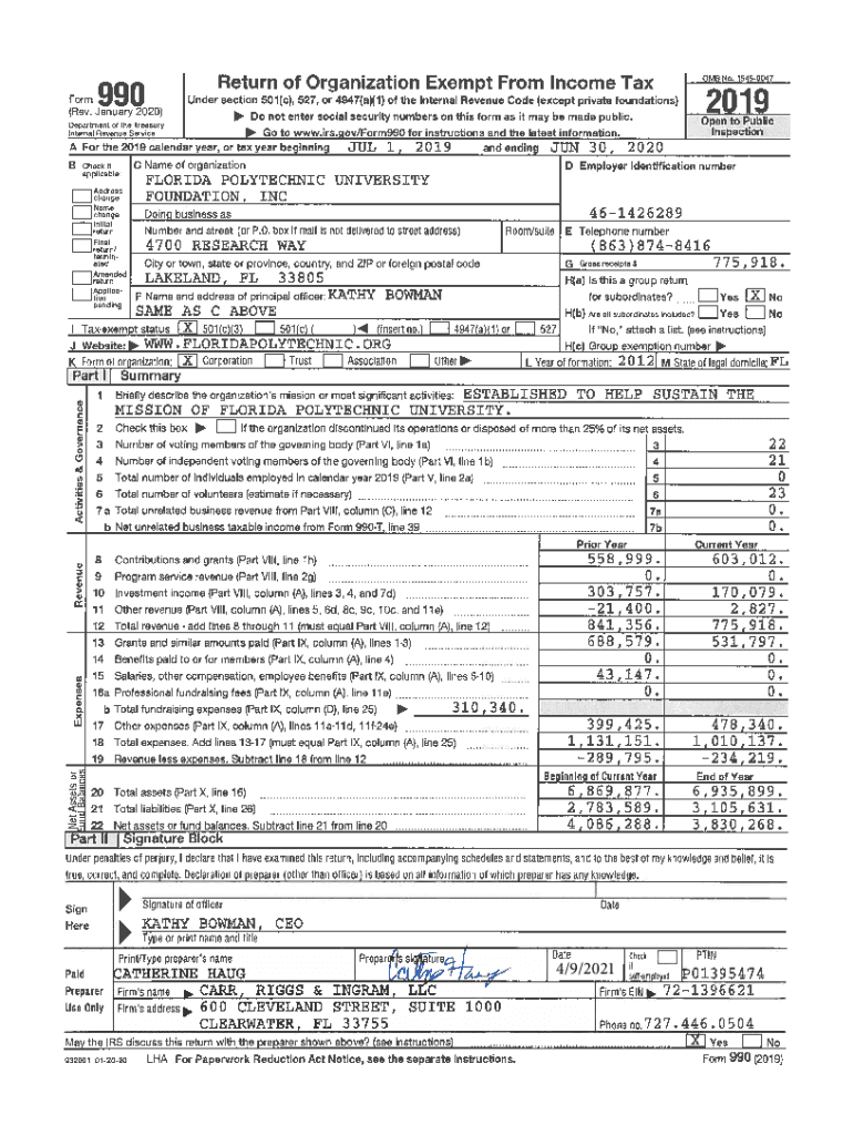 4/9/2021990Form (Rev. January 2020)Return of Organization Exempt From Income Tax OMB No. 15450047| Do not enter social security numbers on this form as it may be made public. Open to Public InspectionDepartment