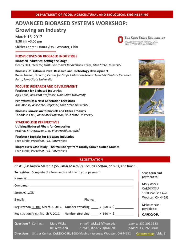 DEPARTMENT OF FOOD, AGRICULTURAL AND BIOLOGICAL ENGINEERINGADVANCED BIO-BASED SYSTEMS WORKSHOP: Growing an Industry March 16, 2017 8:30 am 3:00 pm Sister Center, OAR DC/OSU Wooster, Ohio PERSPECTIVES