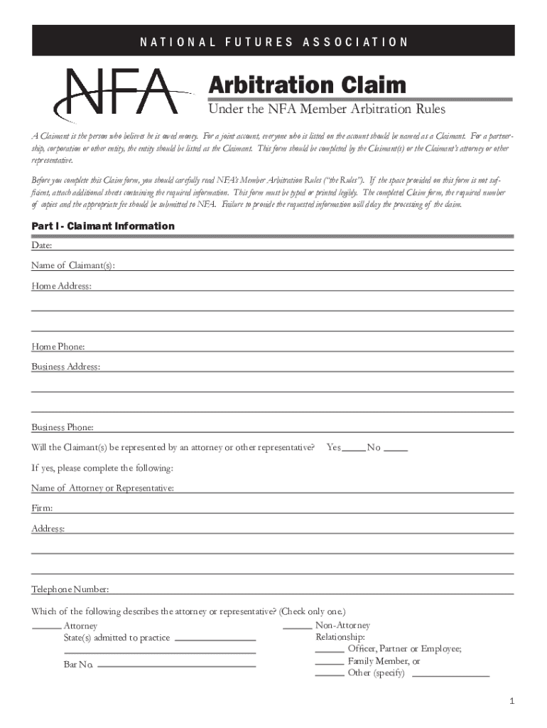 NATIONAL FUTURES ASSOCIATIONArbitration Launder the NFL Member Arbitration Rules A Claimant is the person who believes he is owed money. For a joint account, everyone who is listed on the account