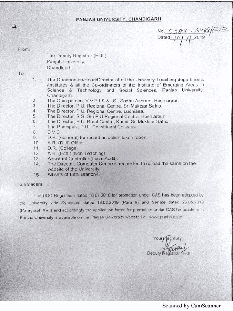 Scanned by CamScannerPANJAB UNIVERSITY, CHANDIGARH Proforma for promotion under UGC Career Advancement Scheme as per UGC Regulation 2018. Application for promotion From:___to___Assessment Period: