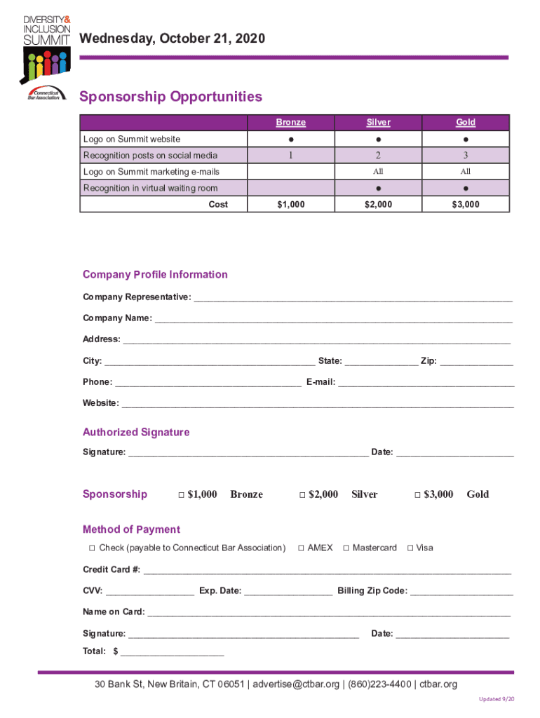 Wednesday, October 21, 2020Sponsorship Opportunities