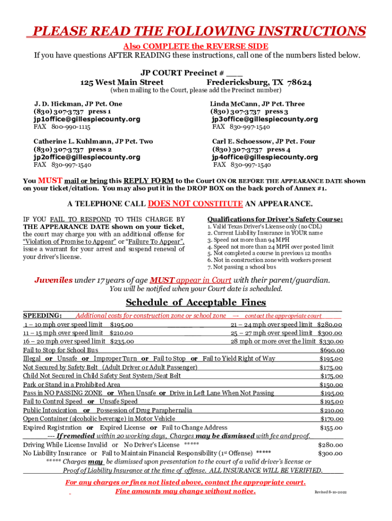 PLEASE READ THE FOLLOWING INSTRUCTIONS Also COMPLETE the REVERSE SIDE If you have questions AFTER READING these instructions, call one of the numbers listed below. JP COURT Precinct # ___ 125 West