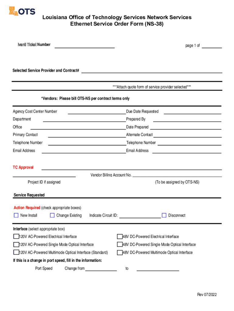 Get the free NS38 Ethernet Service Order Form - doa louisiana