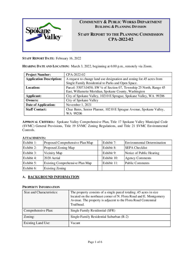 COMMUNITY & PUBLIC WORKS DEPARTMENT BUILDING & PLANNING DIVISIONSTAFF REPORT TO THE PLANNING COMMISSION CPA202202STAFF REPORT DATE: February 16, 2022, HEARING DATE AND LOCATION: March 3, 2022, beginning