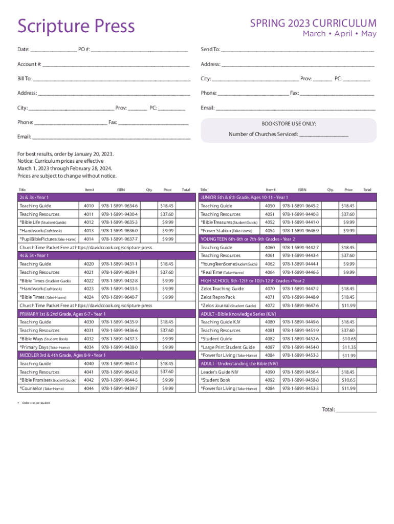 Scripture Pressuring 2023 CURRICULUM March April Mandate: ___ PO #: ___Send To: ___Account #: ___Address: ___Bill To: ___City: ___ Prov: ___ PC: ___Address: ___Phone: ___ Fax: ___City: ___ Prov: ___