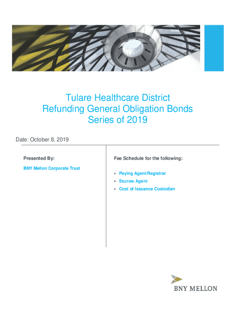 Tulane Healthcare District Refunding General Obligation Bonds Series of 2019 Date: October 8, 2019, Presented By: BNY Mellon Corporate Trustee Schedule for the following: Paying Agent/Registrar Escrow