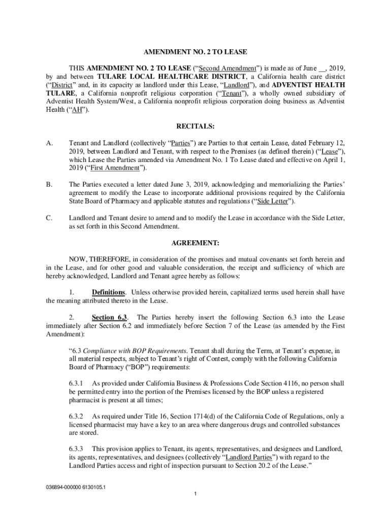 Get the free Amendment No. 2 to Lease Agreement