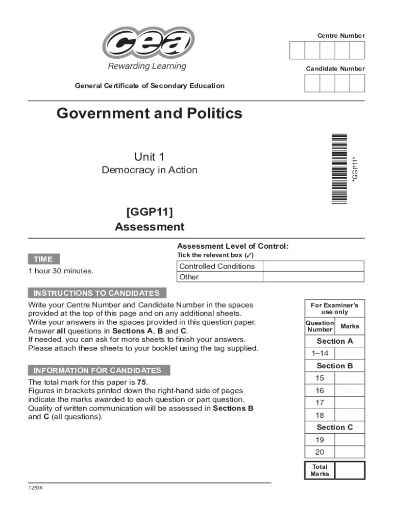 Center NumberCandidate NumberGeneral Certificate of Secondary Educationalist 1Democracy in Action[GGP11]