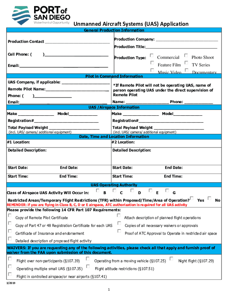 Unmanned Aircraft Systems (UAS) Application General Production Information Production Company: ___Production Contact ___Production Title: Cell Phone: ()___Email:___Production Type:__ Pilot in Command