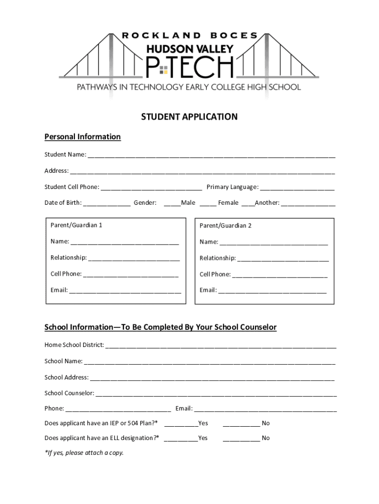 STUDENT APPLICATION Personal Information Student Name: ___ Address: ___ Student Cell Phone: ___ Primary Language: ___ Date of Birth: ___ Gender:___Male ___ Female ___Another: ___Parent/Guardian 1Parent/Guardian
