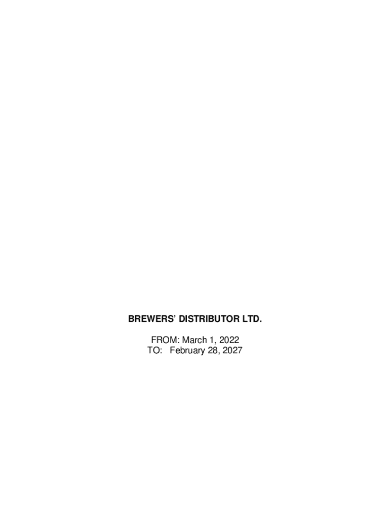 BREWERS DISTRIBUTOR LTD. FROM: March 1, 2022, TO: February 28, 2027Presidents Message Dear Member, A union collective agreement is like a Charter of Rights. It explains, protects and guarantees your