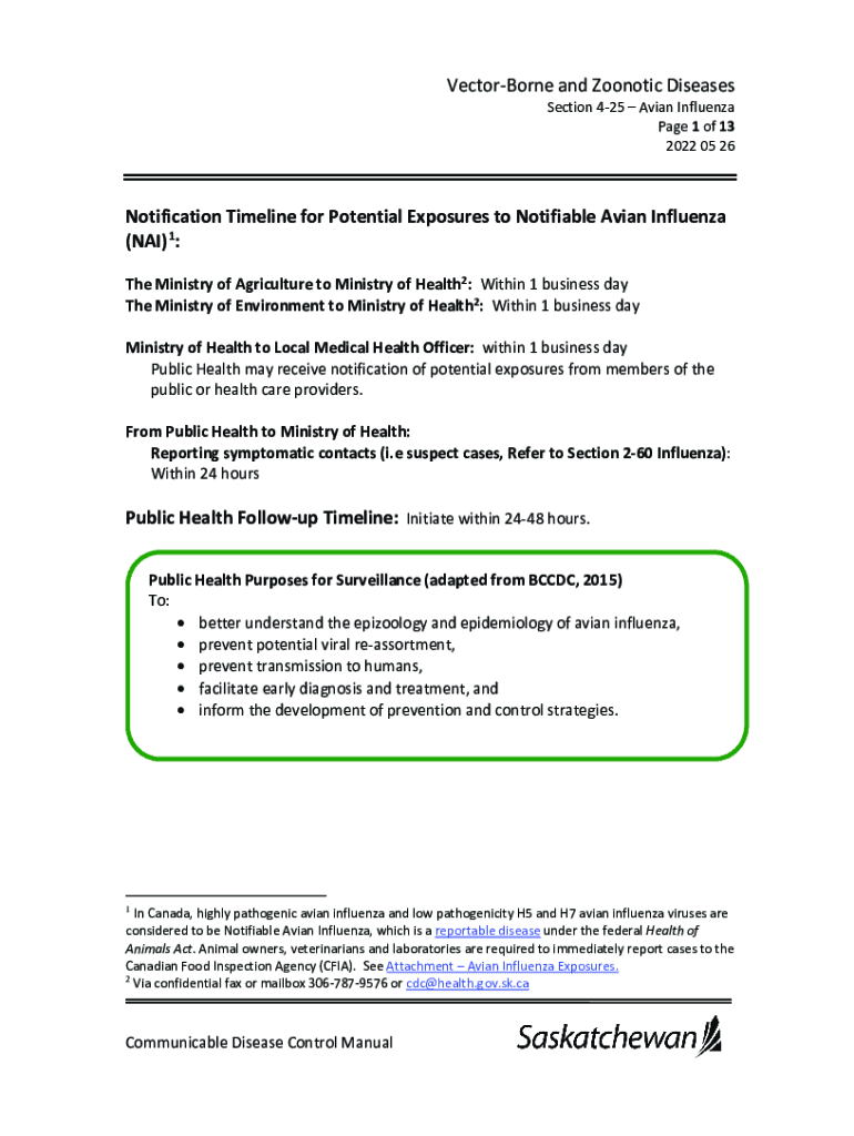 VectorBorne and Zoonotic DiseasesSection 425 Avian Influenza Page 1 of 13 2022 05 26Notification Timeline for Potential Exposures to Notifiable Avian Influenza (NAZI) 1: The Ministry of Agriculture