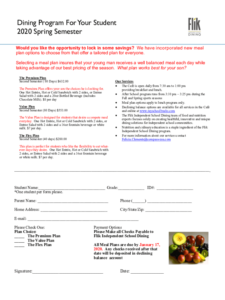 Dining Program For Your Student 2020 Spring Semester Would you like the opportunity to lock in some savings? We have incorporated new meal plan options to choose from that offer a tailored plan for