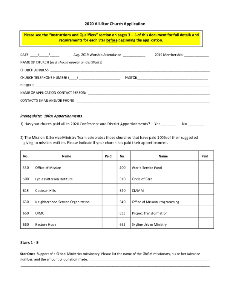 2020 Altar Church Application Please see the Instructions and Qualifiers section on pages 3 5 of this document for full details and requirements for each Star before beginning the application. DATE
