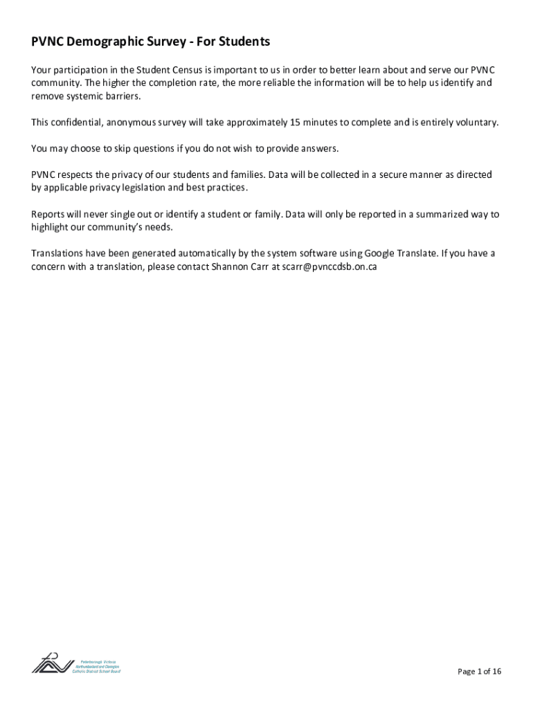 PVC Demographic Survey For Students Your participation in the Student Census is important to us in order to better learn about and serve our PVC community. The higher the completion rate, the more