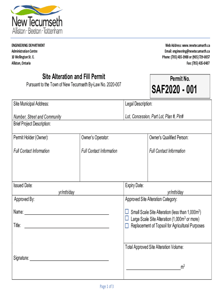 ENGINEERING DEPARTMENT Administration Center 10 Wellington St. E. Allison, Ontario Web Address: www.newtecumseth.ca Email: engineering@newtecumseth.ca Phone: (705) 4353900 or (905) 7290057 Fax: (705)