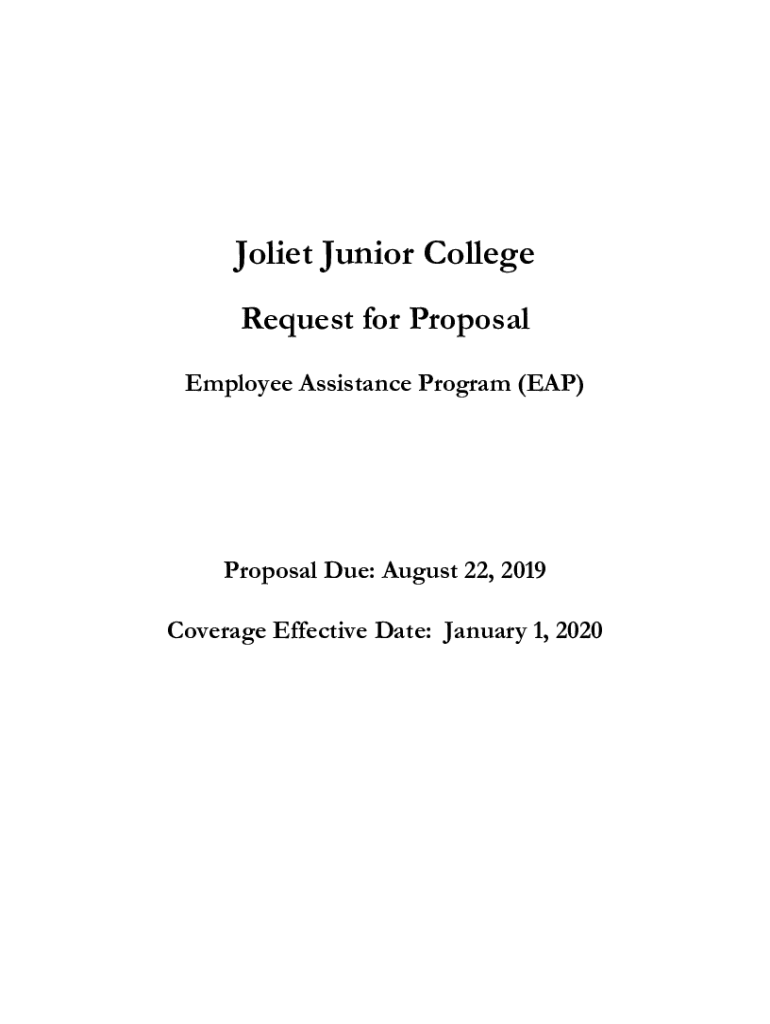 Joliet Junior College Request for Proposal Employee Assistance Program (EAP)Proposal Due: August 22, 2019, Coverage Effective Date: January 1, 20202019 Arthur J. Gallagher & Co. Joliet Junior College