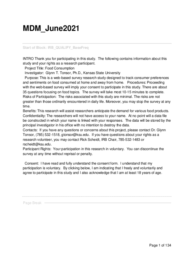 MDM_June2021 Start of Block: IRB_QUALIFY_Carefree INTRO Thank you for participating in this study. The following contains information about this study and your rights as a research participant. Project