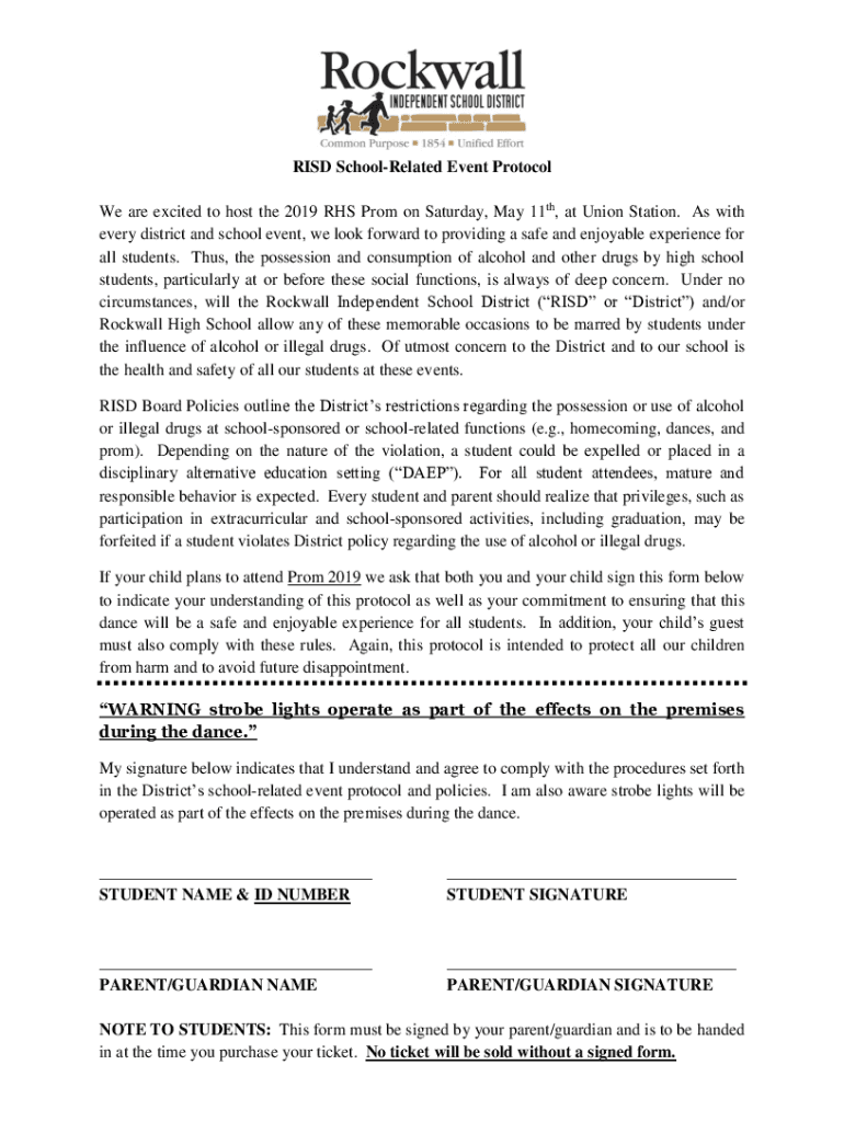 RISE SchoolRelated Event Protocol We are excited to host the 2019 RHS Prom on Saturday, May 11th, at Union Station. As with every district and school event, we look forward to providing a safe and