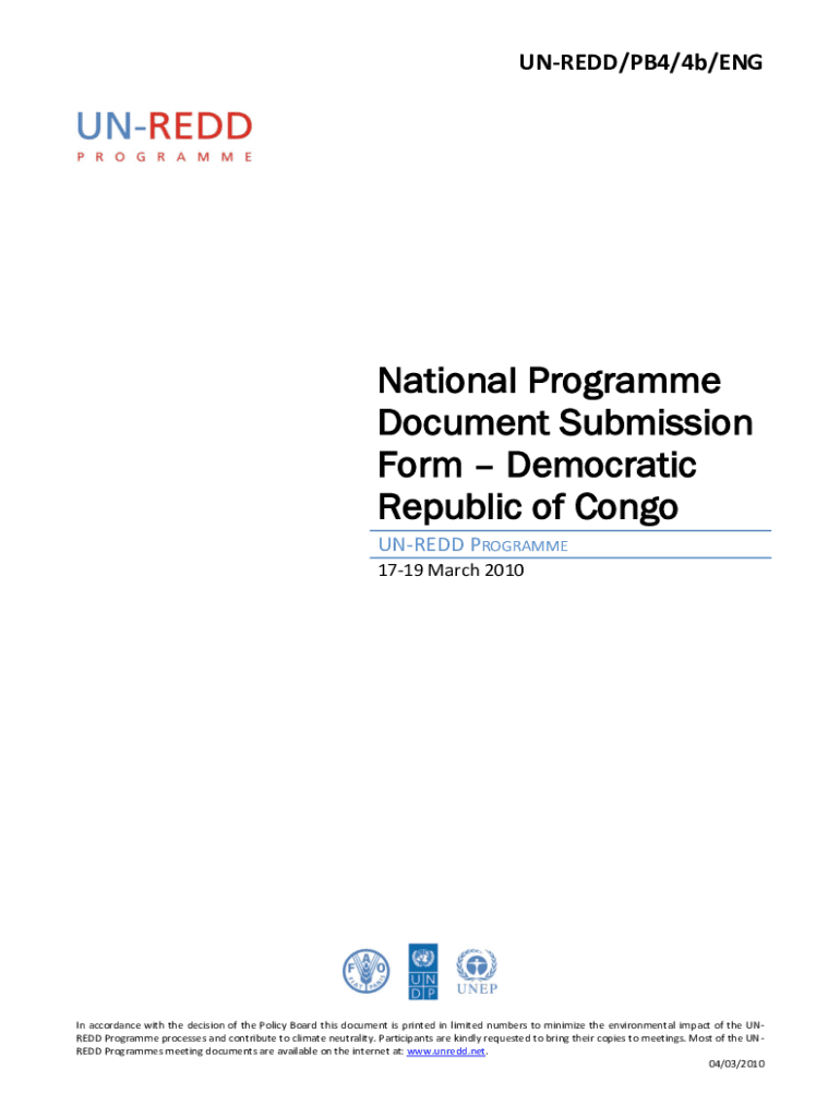 UNREAD/PB4/4b/National Program Document Submission Form Democratic Republic of Congo UNREAD Program 1719 March 2010In accordance with the decision of the Policy Board this document is printed in limited
