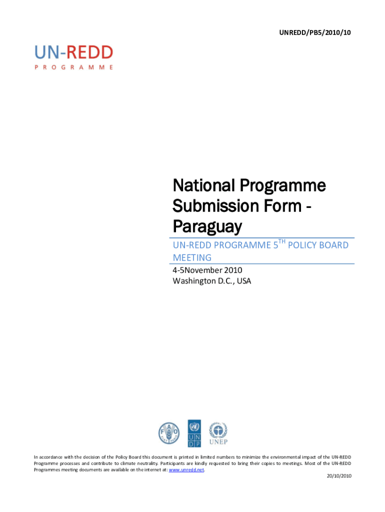 UNREAD/PB5/2010/10National Program Submission Form Paraguay UNREAD Program 5TH POLICY BOARD MEETING 45November 2010 Washington D.C., USA In accordance with the decision of the Policy Board this document